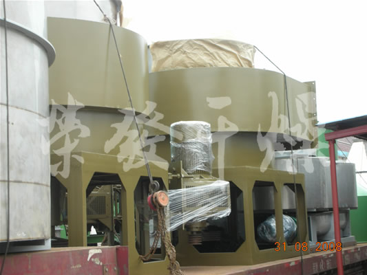 熱空氣切線進入干燥器底部,在攪拌器帶動下形成強有力的旋轉風場。膏狀物料由螺旋加料器進入干燥器內(nèi),在高速旋轉攪拌槳的強烈作用下,物料受撞擊、磨擦及剪切力的作用下得到分散,塊狀物料迅速粉碎,與熱空氣充分接觸、受熱、干燥。脫水后的干物料隨熱氣流上升,分級環(huán)將大顆粒截留,小顆粒從環(huán)中心排出干燥器外,由旋風分離器和除塵器回收,未干透或大塊物料受離心力作用甩向器壁,重新落到底部被粉碎干燥。