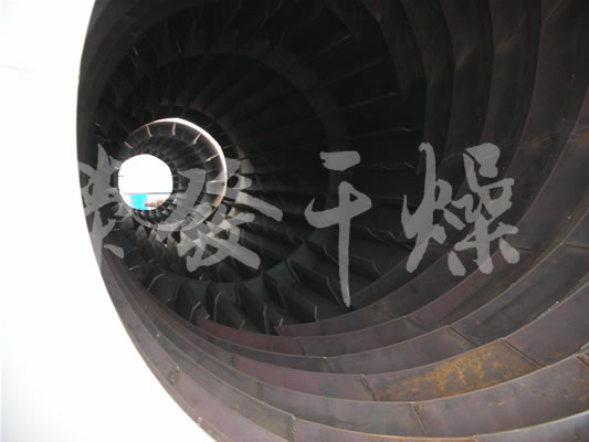 濕物料從干燥機(jī)一端投入后,在內(nèi)筒均布的抄板器翻動下,物料在干燥器內(nèi)均勻分布與分散,并與并流(逆流)的熱空氣充分接觸,加快了干燥傳熱,傳至推動力。在干燥過程中,物料在帶有傾斜度的抄板和熱氣流的作用下,可調(diào)控地運(yùn)動至干燥機(jī)另一段星形卸料閥排出成品。