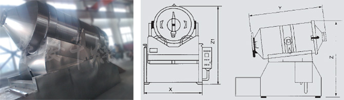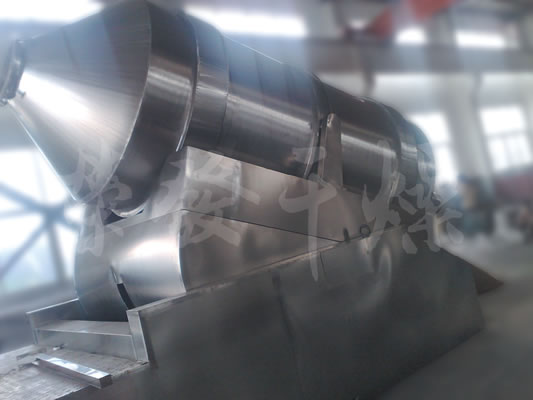 EYH二維混料機(jī)的轉(zhuǎn)筒可同時進(jìn)行二個運(yùn)動,一個為轉(zhuǎn)筒的轉(zhuǎn)動,另一個為轉(zhuǎn)筒隨擺動架的擺動。被混合物料在轉(zhuǎn)筒內(nèi)隨轉(zhuǎn)筒轉(zhuǎn)動、翻轉(zhuǎn)、混合的同時,又隨轉(zhuǎn)筒的擺動而發(fā)生左右來回的摻混運(yùn)動,在這兩個運(yùn)動的共同作用下,物料在短時間內(nèi)得到充分的混合。EYH二維混料機(jī)適合所有粉、粒狀物料的混合。