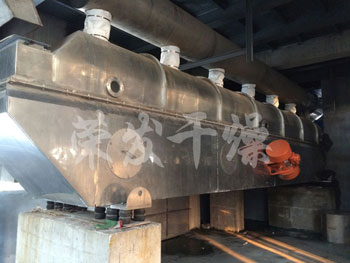 物料自進(jìn)料進(jìn)口進(jìn)入機(jī)內(nèi),在振動力作用下,物料沿水平面流化床拋擲,向前連續(xù)運(yùn)動,熱風(fēng)向上穿過流化床同濕物料換熱后,濕空氣經(jīng)旋風(fēng)分離器除塵后由排風(fēng)1:3排出.干燥物料由排料進(jìn)口排出。